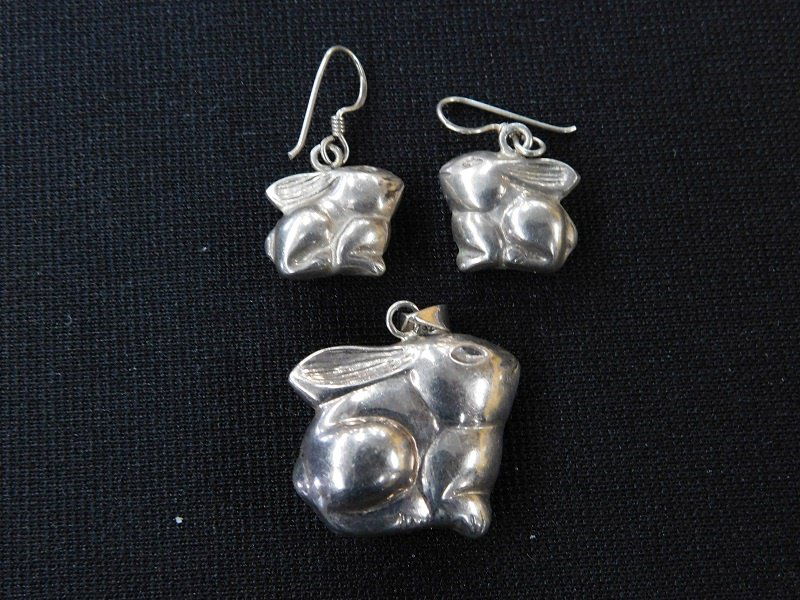 Silver Rabbit Pendant and Earring Set