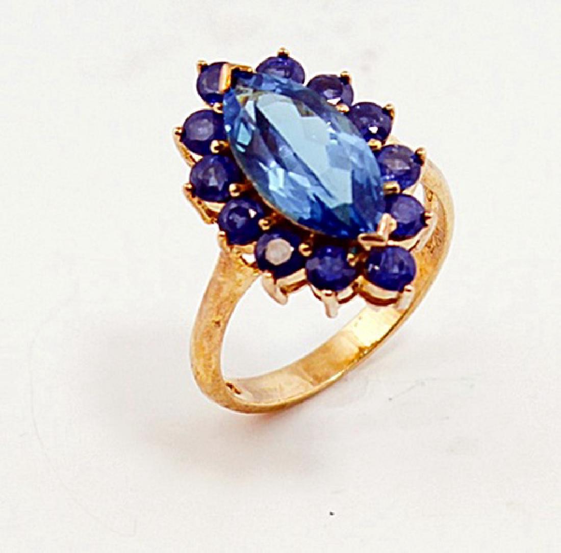 SILVER RING WITH BLUE TOPAZ AND SAPPHIRE