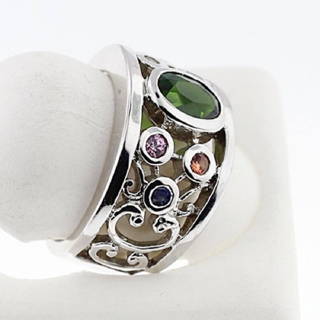 SILVER RING WITH CHROME DIOPSIDE AND MULTISAPPHIRE