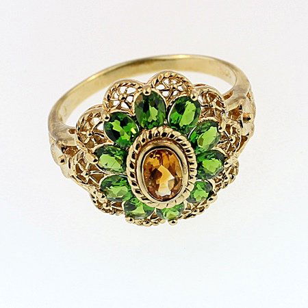 SILVER RING WITH CITRENE AND CHROME DIOPSIDE