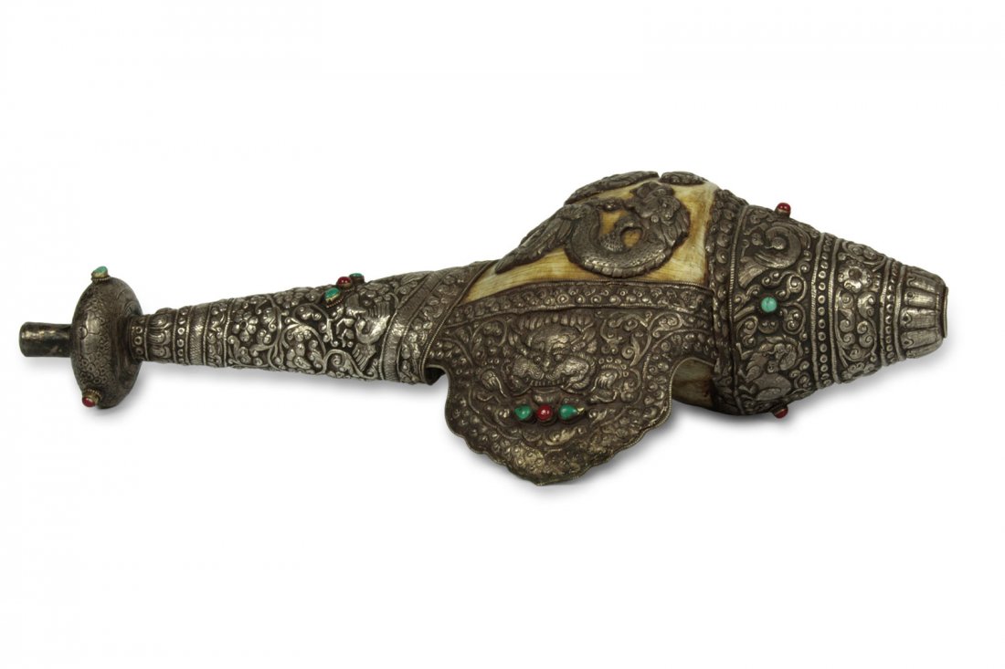 Silver ritual Conch Shell Sankha, Tibet, 19/20th c.