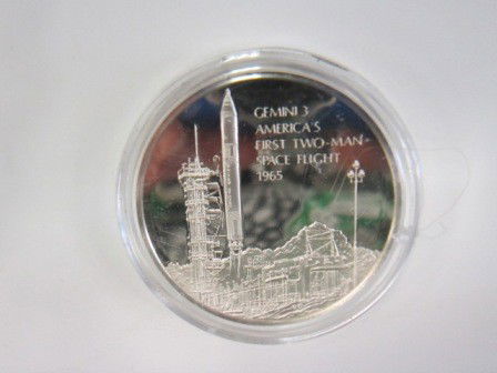 Silver round incased in plastic Gemini