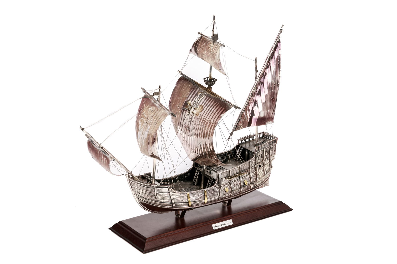 SILVER 'SANTA MARIA' SHIP MODEL