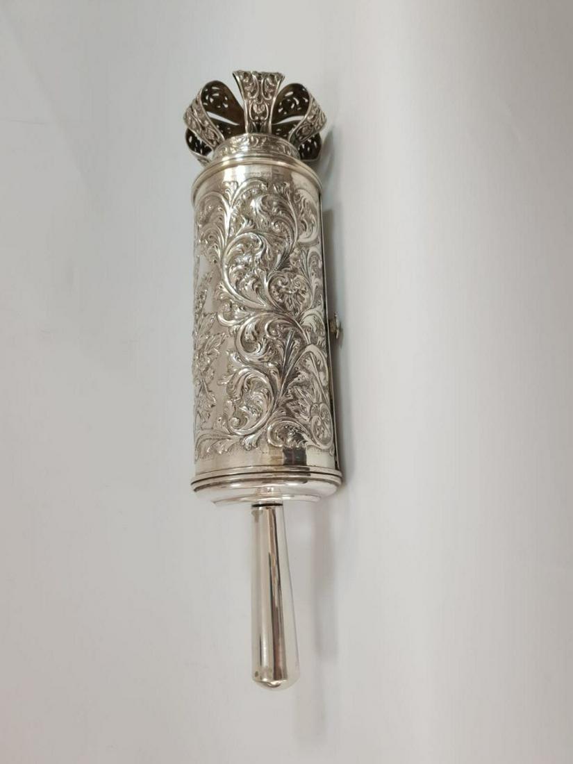 A SILVER MEGILLAH CASE WITH THE ORIGINAL MEGILLAH. Jerusalem, c. 19404 days LeftA SILVER FILIGREE MEGILLAH CASE. Ottoman Empire, c. 18604 days LeftA MEGILLAH CASE BY JACOBS. Probably Israel, c. 19904 days LeftHandmade 925 Sterling Silver Leaf Applique Megillah Holder 16.25 InchesMar 02, 2026A HANDWROUGHT MEGILLAH CASE WITH PAPER MEGILLAH4 days LeftWhiskey Bottle, Solid Sterling Silver, Marked Shiebler & Co, Model #2251Mar 21, 2026A SINGLE SILVER TORAH FINIAL BY PIETER ROBOL II. Amsterdam, 1757.4 days LeftGodinger Silver Elaborate Jewelry ChestMar 02, 2026Handmade 925 Sterling Silver Mezuzah with Leaf Applique CrownMar 03, 2026A MASSIVE STERLING SILVER TORAH CROWN. American, early 20th century.4 days LeftA MAGNIFICENT SILVER TORAH FINIAL WITH LION ANTIQUE JUDAICA4 days LeftJudaica Silver MezuzahMar 26, 2026Antique Persian Silver Rose Water Sprinkler Bottle4 days LeftSterling Silver Jewish Judaica Hebrew Mezuzah PendantFeb 26, 2026Samuel Kirk & Son Coin Silver Repousse Ewer with Ram Handle2 days LeftHandmade 925 Sterling Silver Leaf Applique Megillah Holder 21 InchesFeb 28, 2026