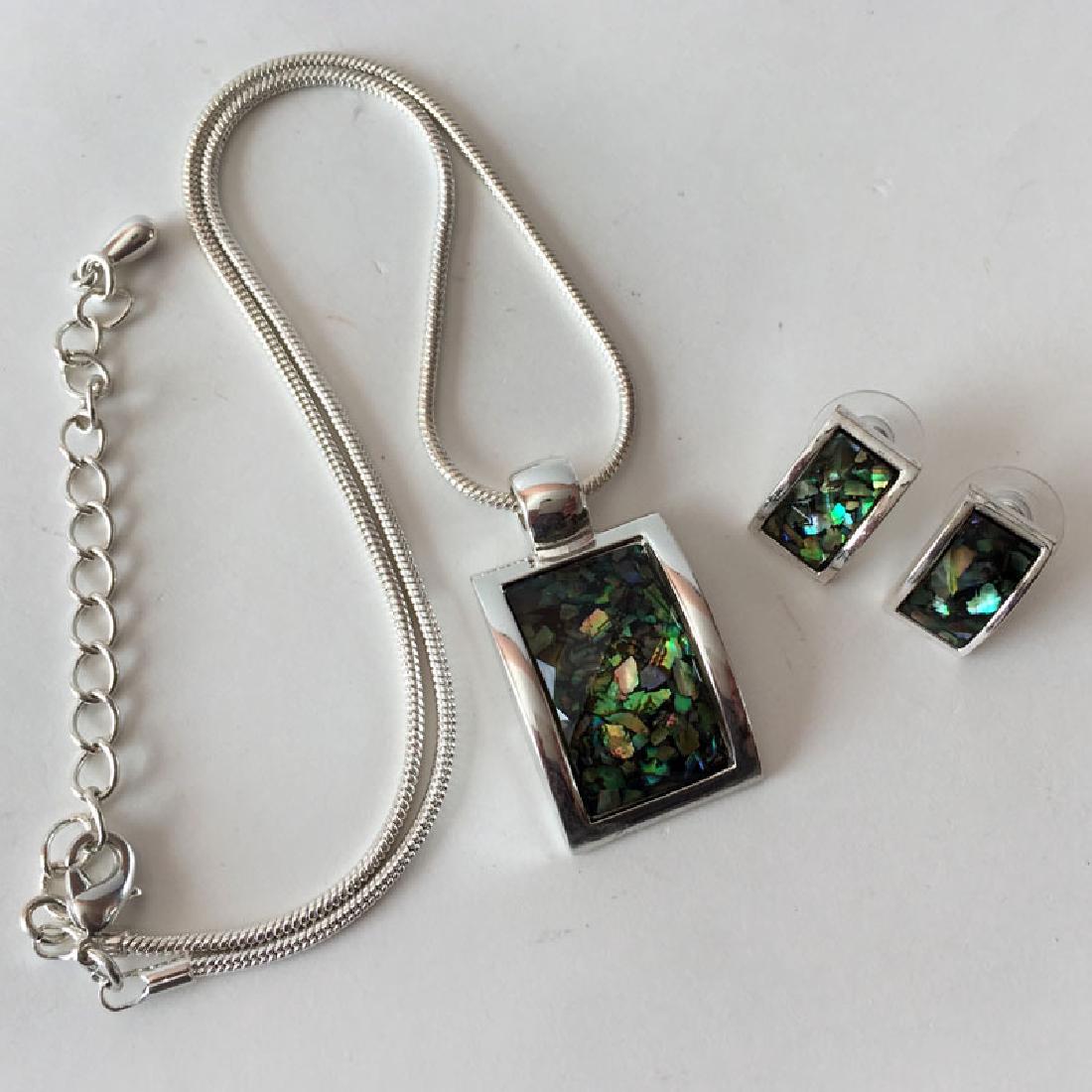 Silver tone SET -pendant with snake chain, post and