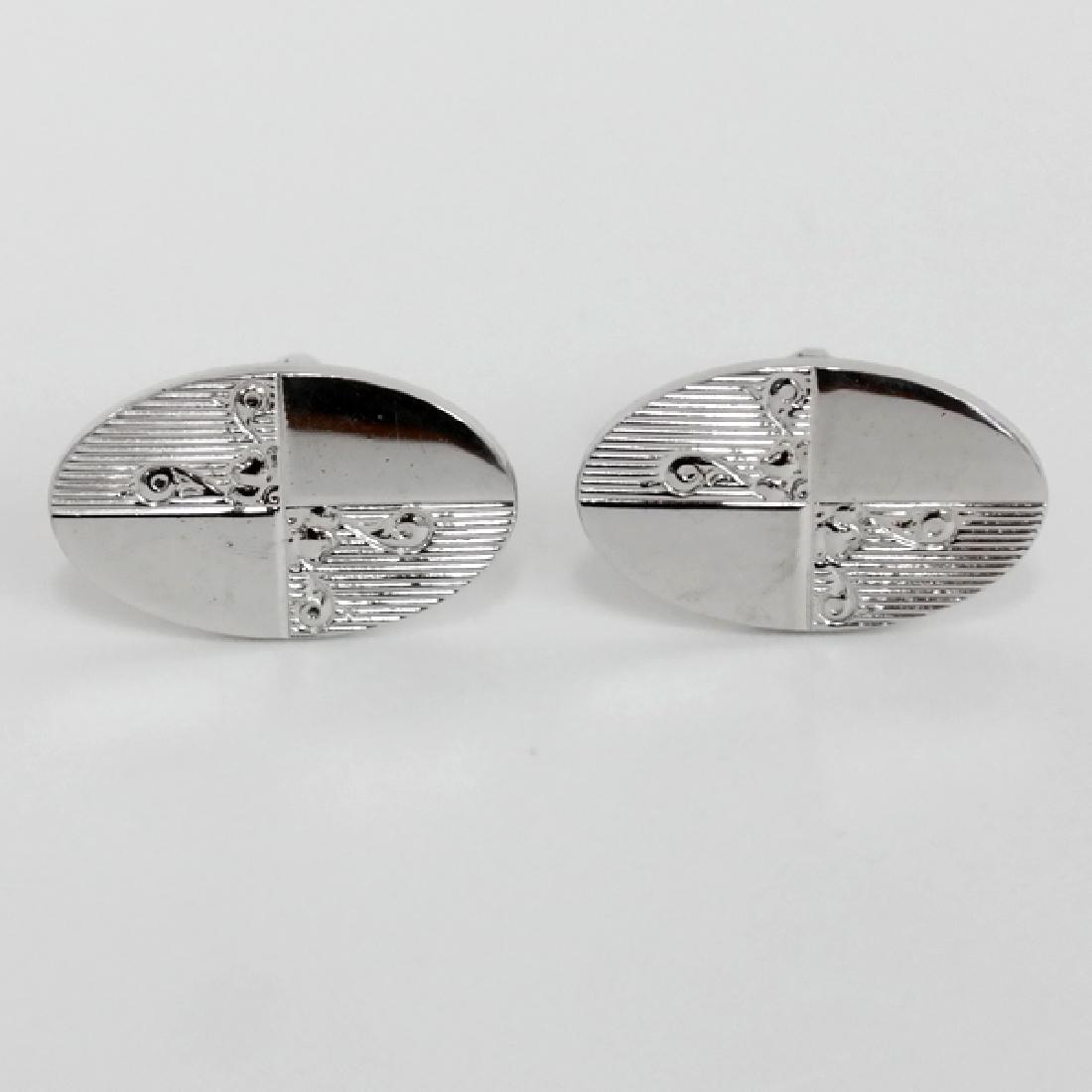 Silver tone shiny and textured oval shape cufflinks