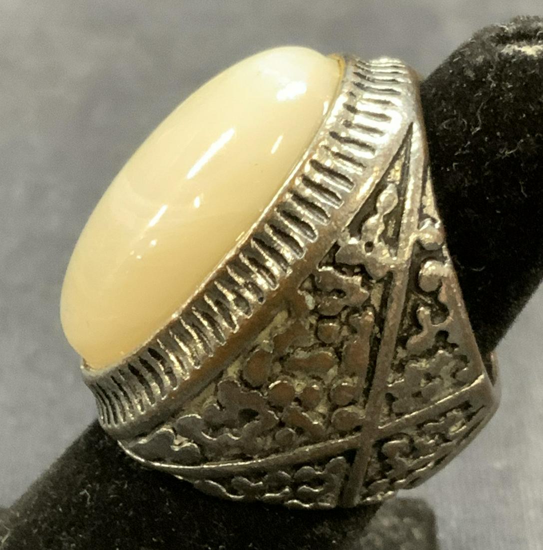 Silver Tone White Cabochon Cocktail Ring