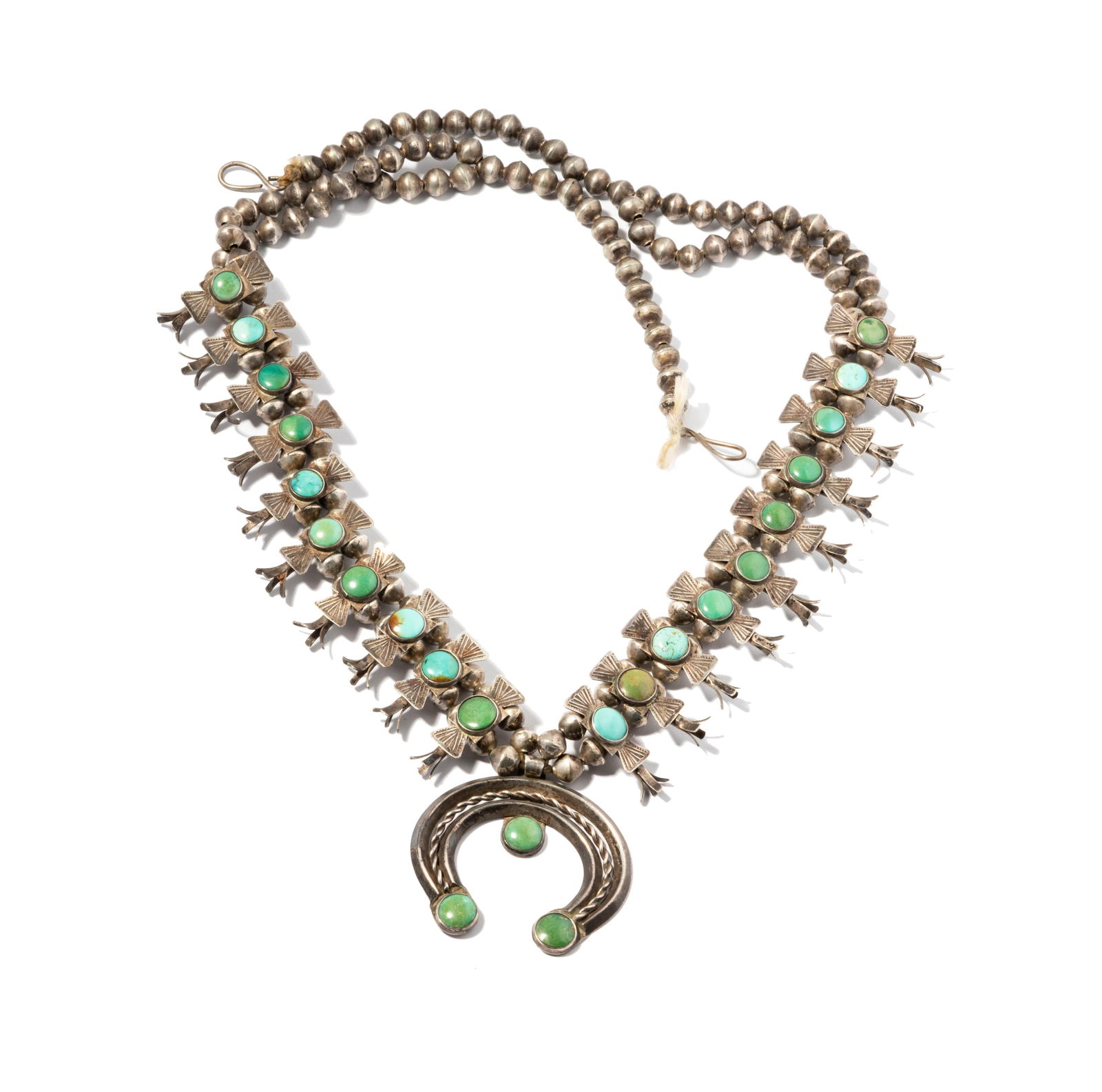 A Southwest Zuni sterling silver and turquoise squash blossom necklaceJohn Moran Auctioneers, Inc.4.7(501)$950(2 bids)8 hrs Left