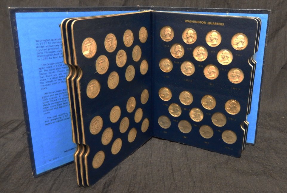US 1939-1964 A Lot of Washington Quarters, 90% Silver, KM-164Lot of Miscellaneous U.S. Coins4 days LeftWashington Head Quarter Collection 1932 to 1945 Lot of Twenty Three CoinsMar 19, 2026A Washington Quarter Collection 1932-1945 in Whitman Folder No. 9018Mar 26, 2026A Collection of United States Franklin Half Dollars in a Whitman Coin FolderMar 26, 2026US 1938-1961 Jefferson Nickel Collection, Cupro-Nickel and SilverUS 1923-1964 Silver Coin Collection, 90% SilverWashington Quarters 1932-1964 Silver Collection in Whitman Deluxe Album3 days LeftComplete 1932-1964 Washington Silver Quarters Set in Whitman Deluxe Album709 Lots AwayForty One Silver Washington Quarters Coin BookMar 20, 2026A Partial Collection of United States Washington Silver Quarters in a Whitman Coin FolderMar 26, 2026Washington Head Quarter 90% Silver CollectionJul 02, 2025Washington Head Quarter 90% Silver CollectionJun 25, 2025Washington Head Quarter 90% Silver CollectionJun 26, 2025Washington Head Quarter 90% Silver CollectionJul 09, 2025Washington Head Quarter 90% Silver CollectionJul 07, 2025