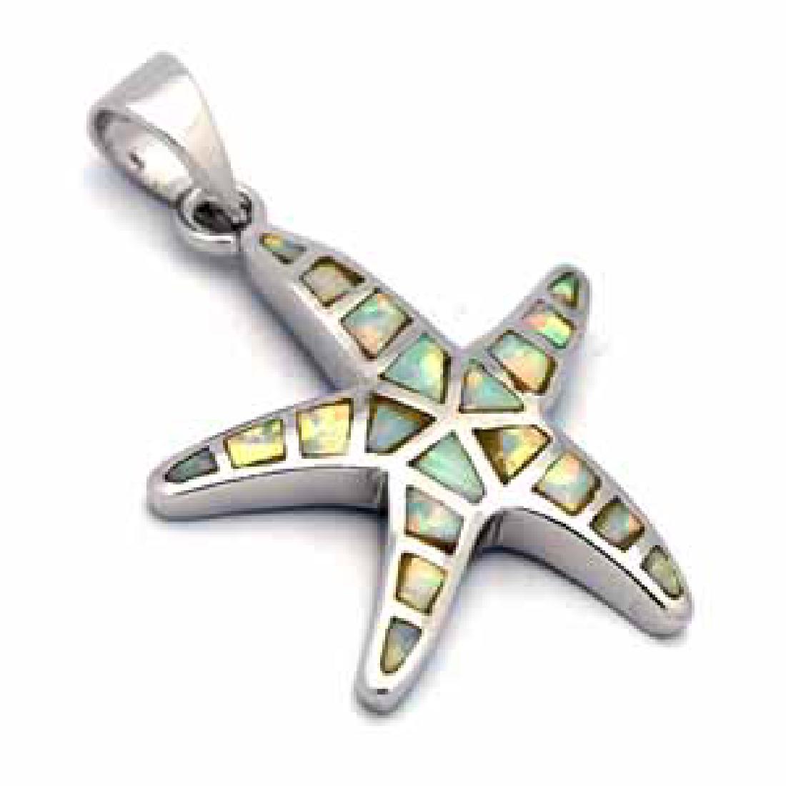 SILVER WHITE OPAL STARFISH PENDANT 23MM