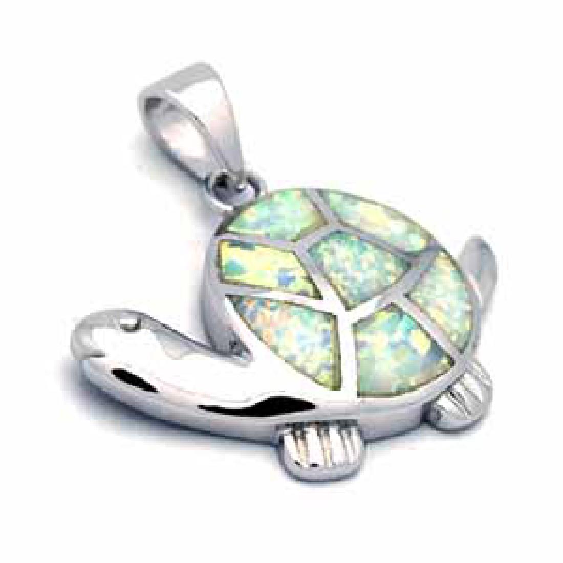 SILVER WHITE OPAL TURTLE PENDANT 17MM