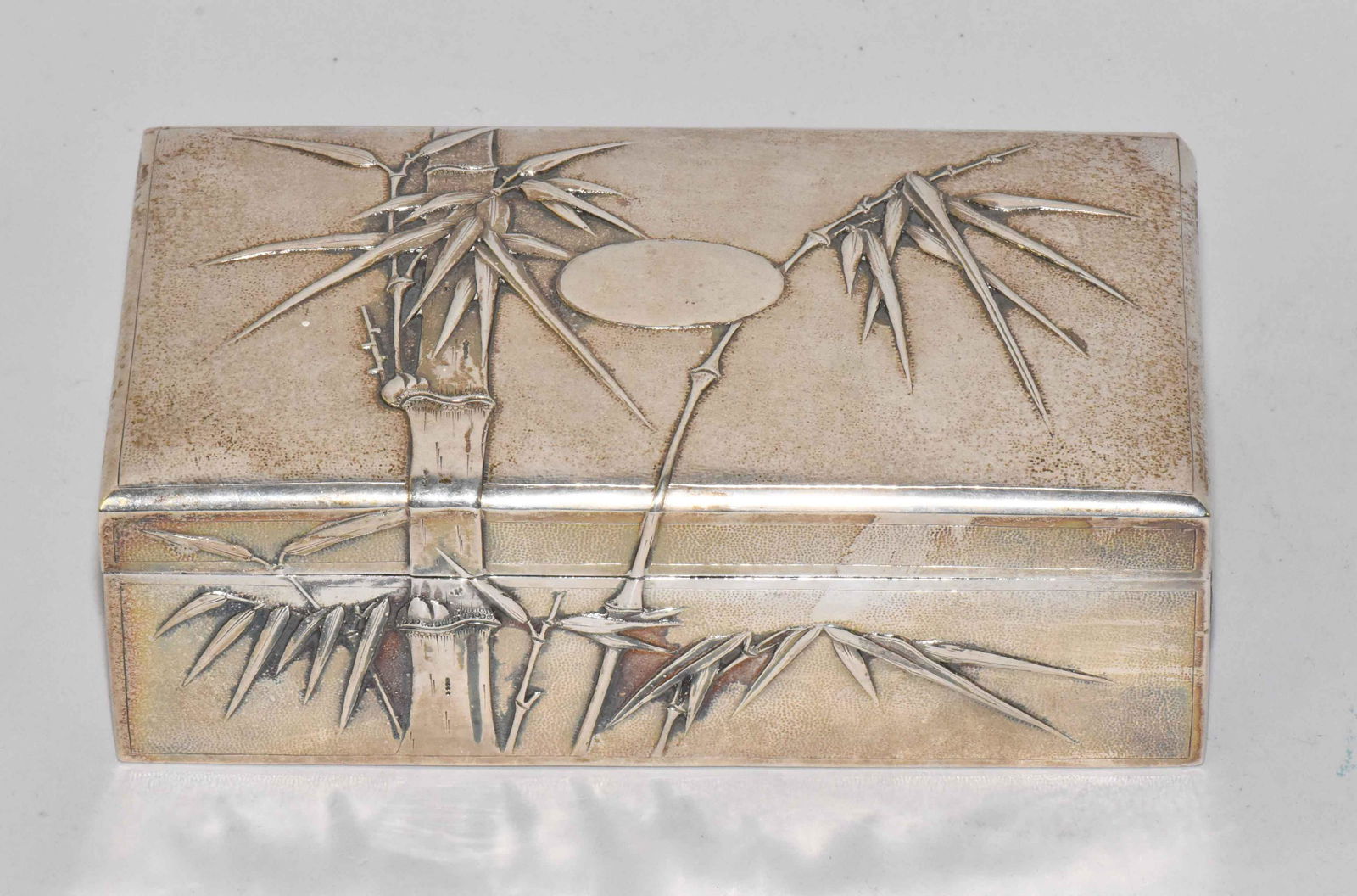 SILVERED ORIENTAL BAMBOO DECORATIVE BOX, w/pin hinge