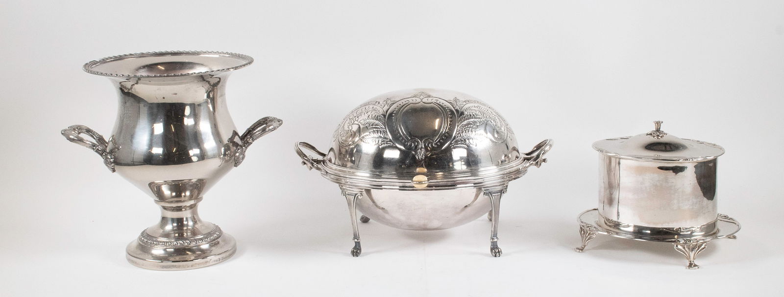 Silverplate Biscuit Box, Warmer, Wine Bucket