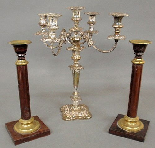Silverplate five light candelabra 18”h.x16”w. tog