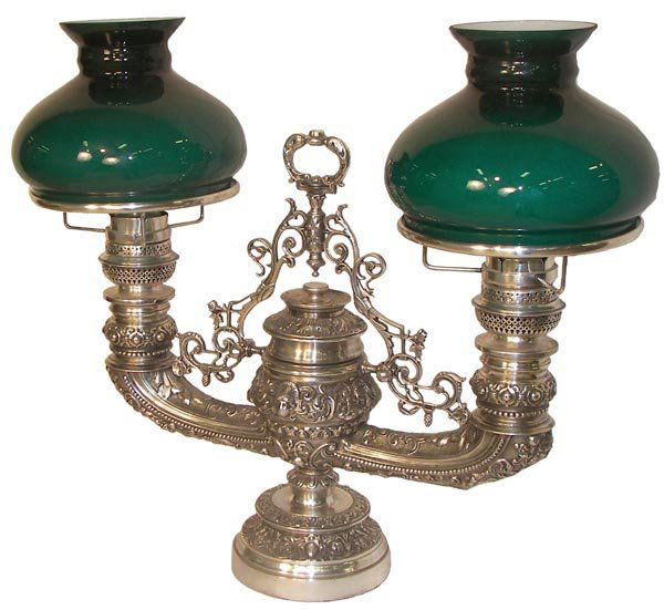 Silverplate over bz. Harvard dbl. student lamp
