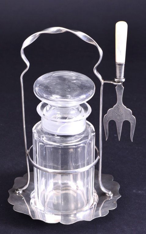 Silverplate Pickle Caster w/Pearl Handle Fork