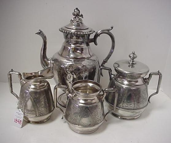 Silverplate Teapot with 3 Matching Pieces