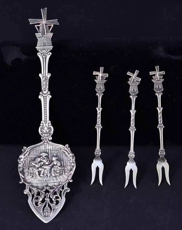 Silverplate Windmill Server & 3 Matching Forks