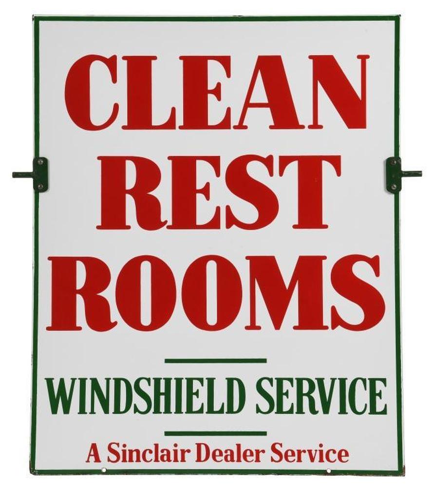Sunoco Rest Rooms Colonial Lady & Man DSP Sign w BracketMar 21, 2026Sinclair Clean Rest Room Double-Sided Porcelain SignMar 25, 2026Cities Service Clean Rest Room Porcelain Curb Sign (TAC)Mar 25, 2026Cities Service Clean Rest Rooms signMar 28, 2026Texaco Service Station Rest Room SignMar 07, 2026Home Clean Rest Rooms Double-Sided Flange SignMar 14, 2026Drive With Care Buy Sinclair Plastic Sign In CanMar 20, 2026Sunoco Custom Clean Restrooms Double Sided Tin Key Fob Holder SignMar 21, 2026Sinclair H-C Gasoline Porcelain Sign (48)(TAC)Mar 25, 2026Texaco Clean, Clear, Golden Free Crankcase Service Porcelain Sign (TAC)Mar 25, 2026Associated Certified Clean Comfort Stations Porcelain SignMar 14, 2026Texaco Restrooms Double Sided Key Fob SignMar 21, 2026Recommended By Motor Trips For Friendly Service Double Sided Porcelain SignMar 21, 2026"Large" Sinclair Opaline Motor Oil w/Flat Can & Privilege Panel Porcelain Sign (TAC)Mar 25, 2026Sinclair Opaline Motor Oil w/Logo Porcelain Sign (TAC)Mar 25, 2026Sinclair Opaline Motor Oil w/Flat Can Logo Porcelain Sign (TAC)Mar 25, 2026
