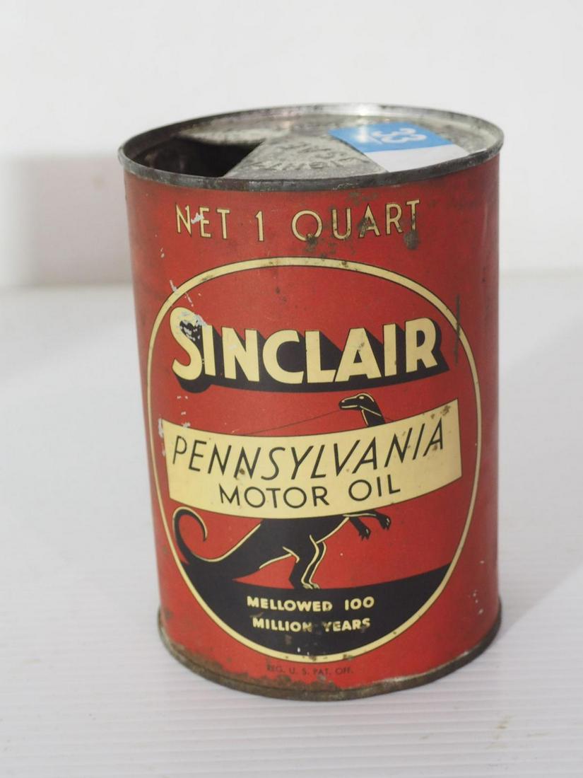 Sinclair Pennsylvania Motor Oil w/Standing Dinosaur Logo Quart Can (TAC)Mar 24, 2026Sinclair Pennsylvania Motor Oil w/Black Dinosaur Quart Can (TAC)Mar 24, 2026Modern Petroleum Corp. Modern Pennsylvania 1 Gal. Motor Oil CanMar 16, 2026Sinclair Opaline Motor Oil One Quart Round Metal Can (TAC)Mar 24, 2026Sinclair Opaline Motor Oil One-Gallon Flat Metal Can (TAC)Mar 24, 2026Pennsylvania Petroleum Products Co. Quaker City 2 Gal. Motor Oil CanMar 16, 2026Hanco6ck Pennsylvania Motor Oil One Quart Round Metal Can (TAC)Mar 24, 2026Penn Glenn Motor Oil One Quart Round Metal Can (TAC)Mar 24, 2026Pennsylvania Motor Oil w/Image One-Quart Round Metal Can (TAC61303)Mar 24, 2026B.F. Goodrich Co. Penrich Motor Oil 2 Gal CanMar 16, 2026Penn-Rad Motor Oil 2 Gallon CanMar 21, 2026Sinclair One Quart Metal Oil CanMar 08, 2026Sinclair Upper Lubricant Oil Can5 days LeftSinclair Opaline 1 Quart Metal Oil Can5 days LeftB.F. Goodrich Co. Penrich Motor Oil 2 Gal CanMar 16, 2026B.F. Goodrich Co. Penrich Motor Oil 2 Gal CanMar 16, 2026