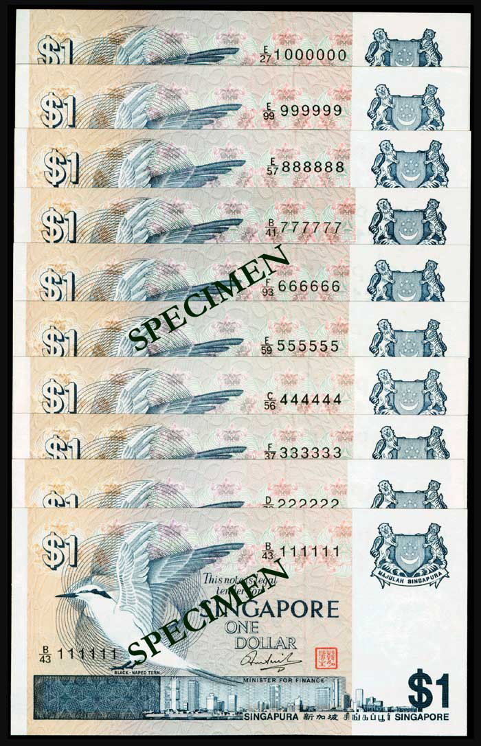 Singapore $1 1976 bird 10 solid nos