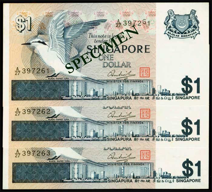 Singapore $1 1976 bird 3 consecutive error