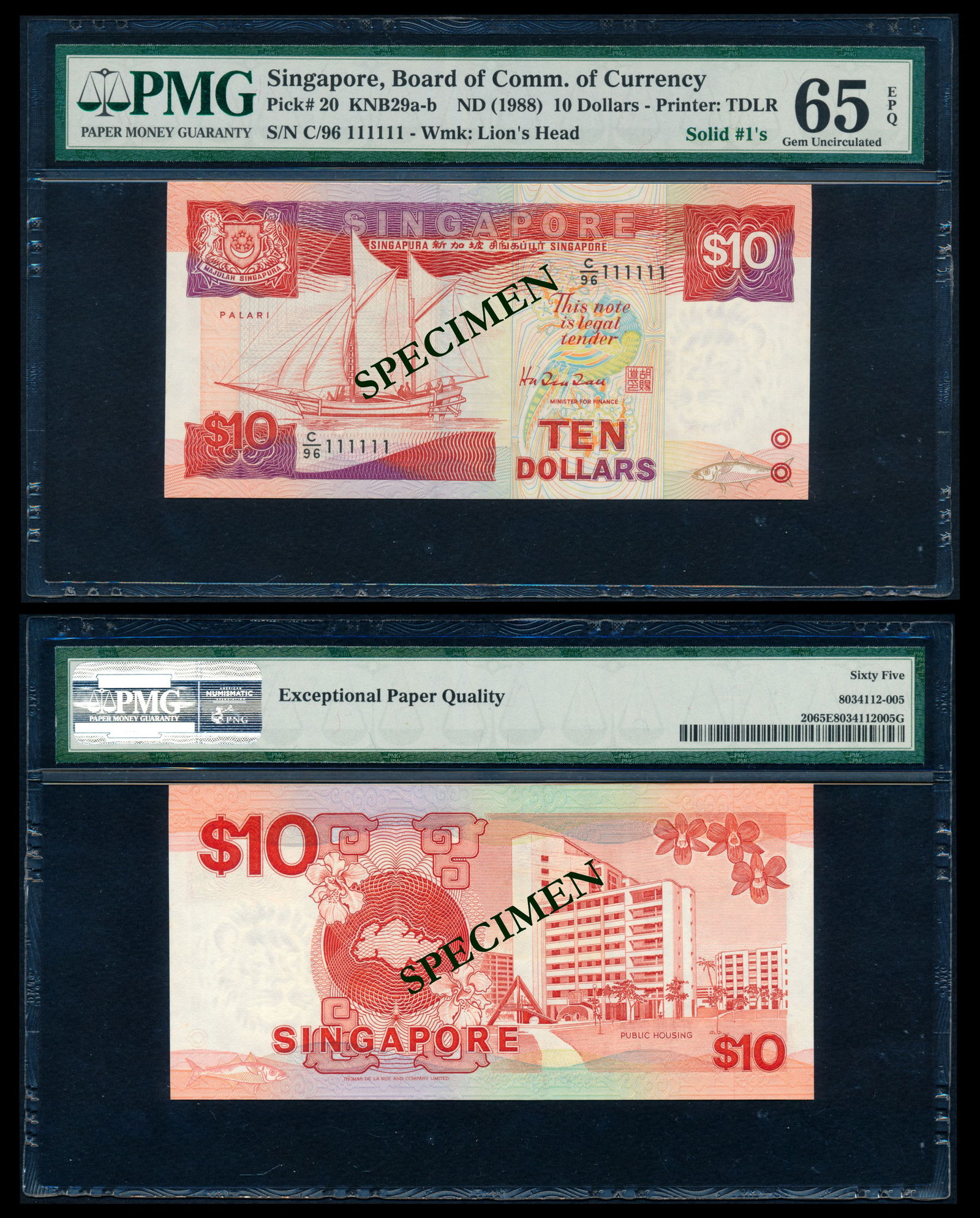 Singapore $10 1988 ship solid 1s PMG