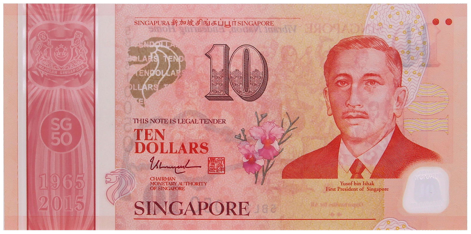 Singapore. 10 dollar. Banknote. Type 2015. - UNC.