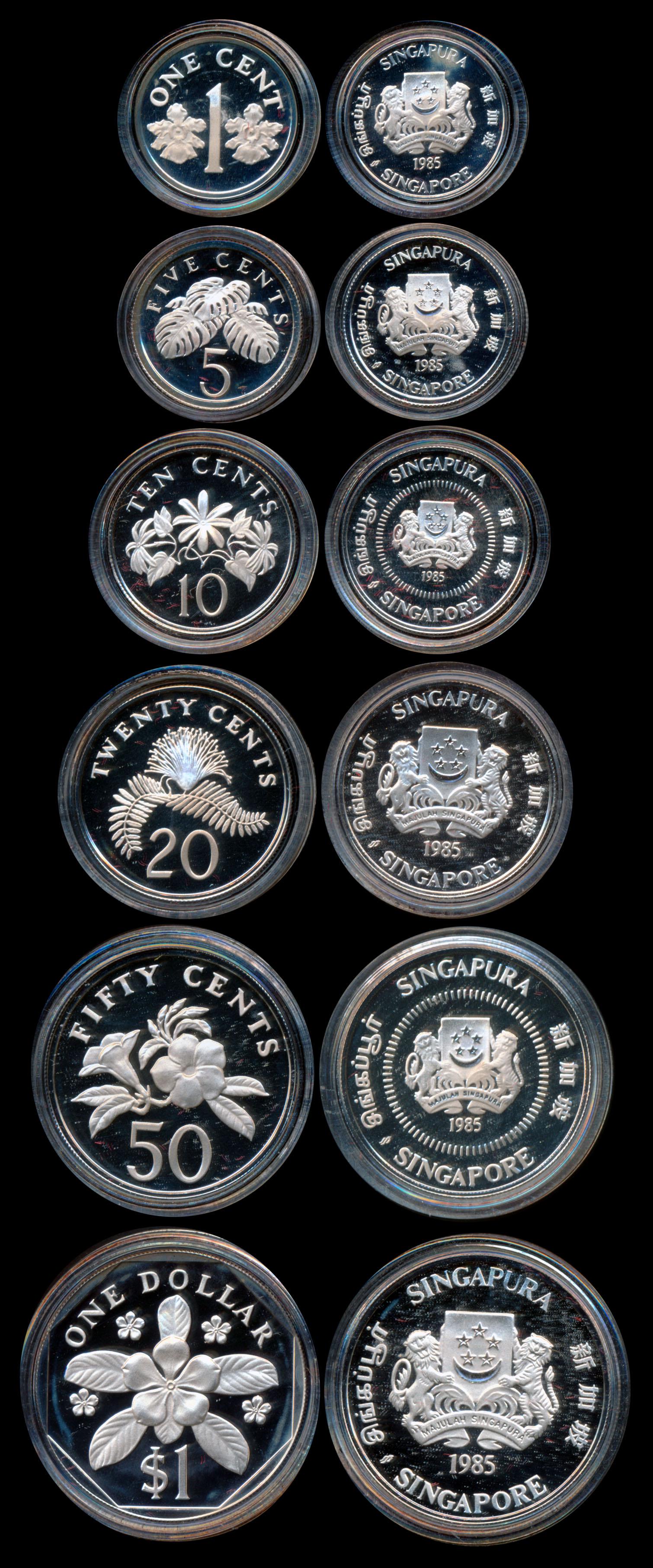 Singapore 1c-$1 1985 Silver Proof Set