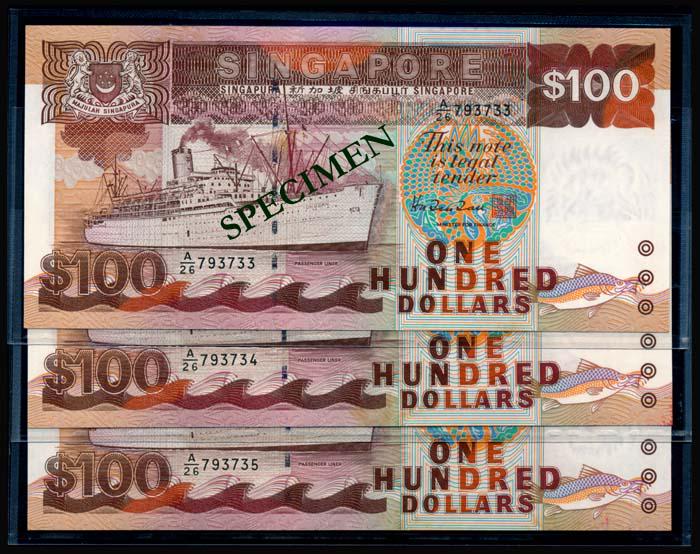 Singapore $100 1985 ship HTT A/15 333333 PMG
