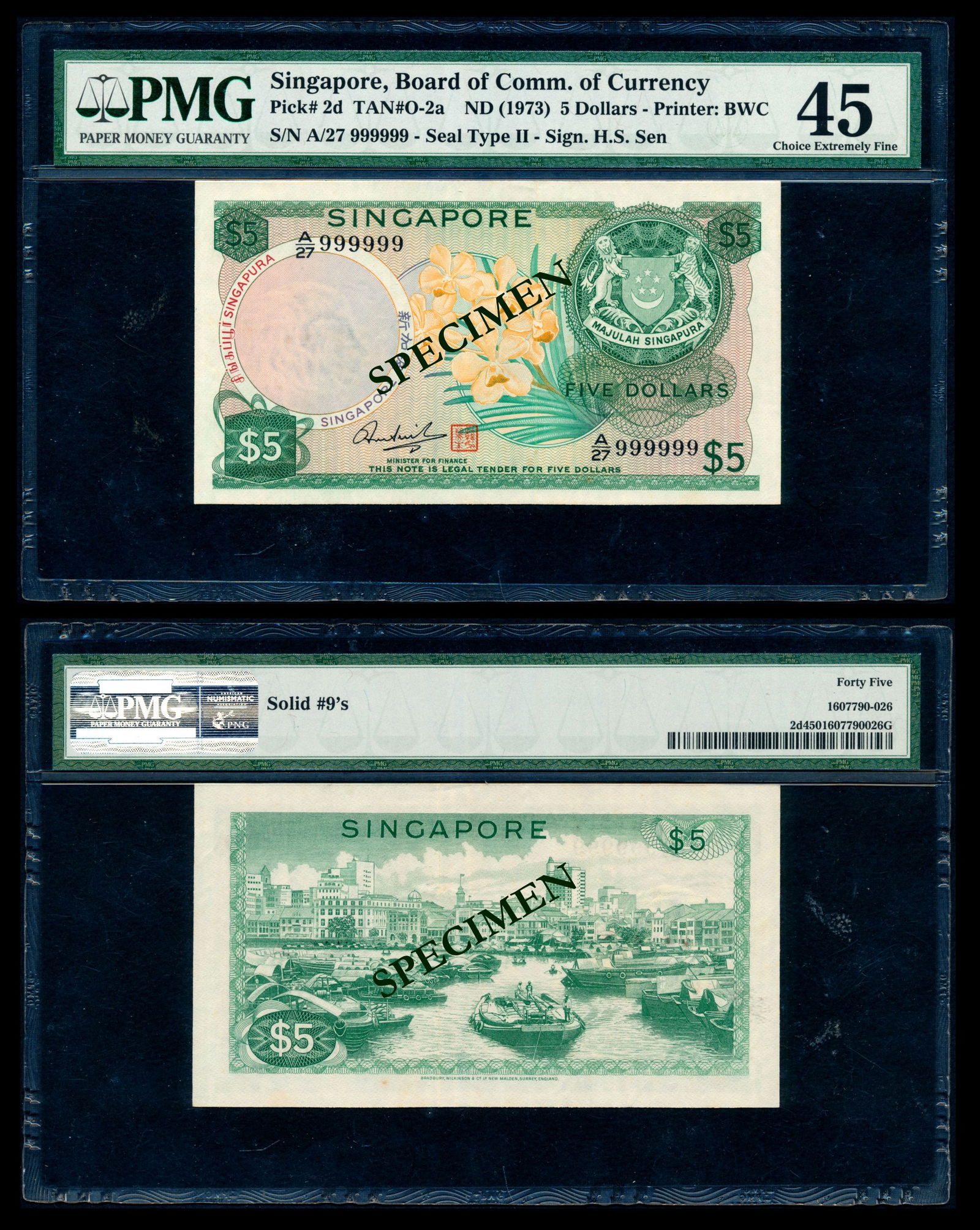 Singapore $5 1973 HSS w/seal solid 9s PMG