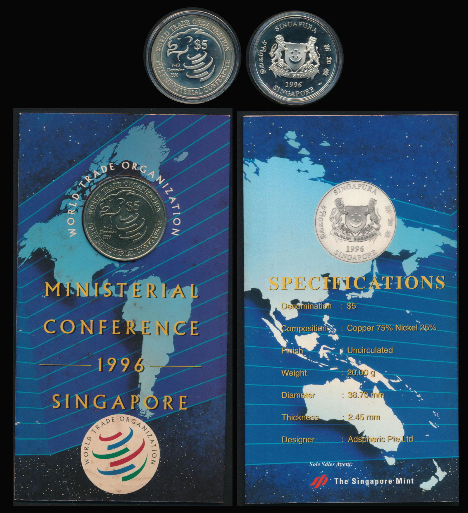 Singapore $5 1996 unc & proof