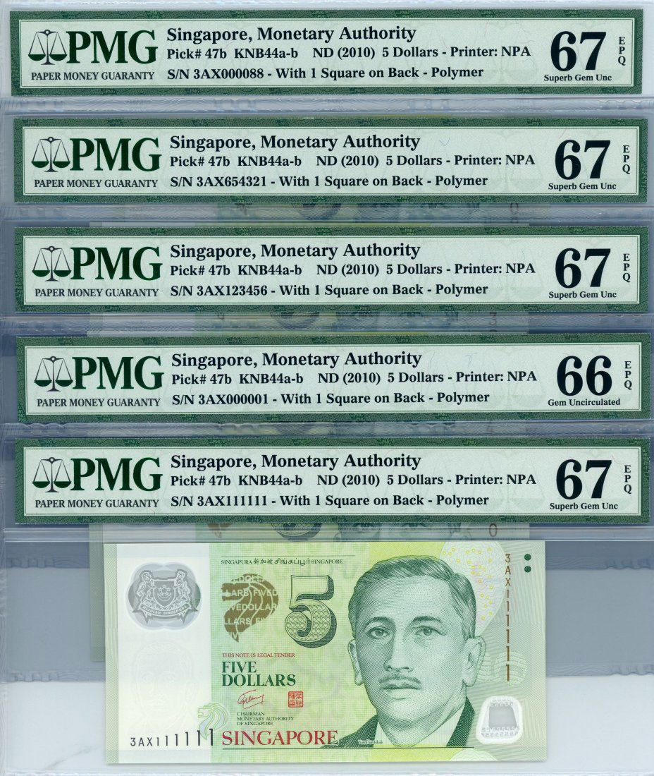 SINGAPORE $5 (2010) Same prefix , Solid, Ladder, Golden