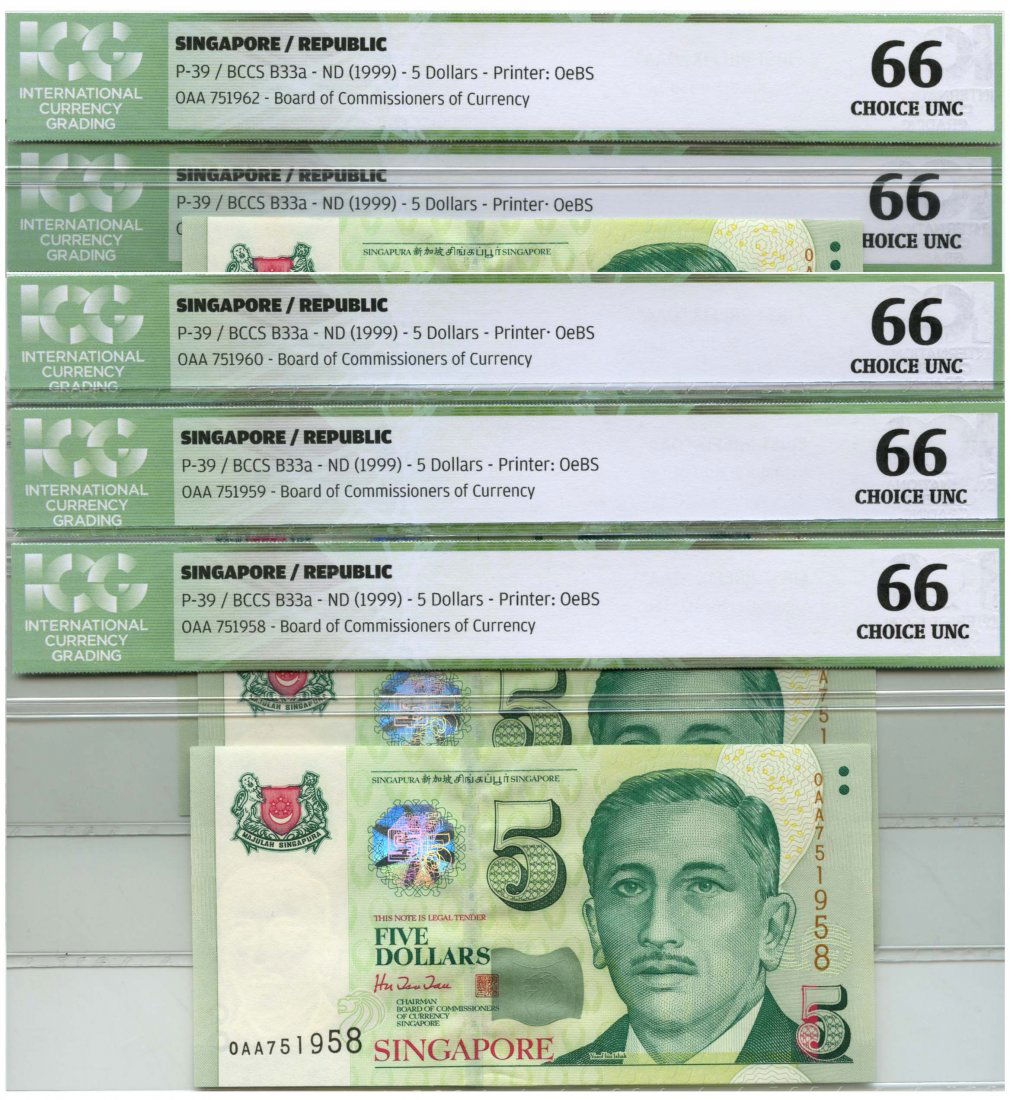 Singapore $5 Htt Consecutive First Prefix 0aa751958 62