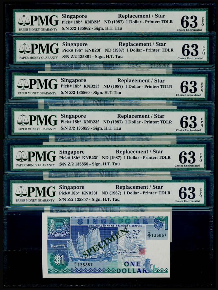 2 Singapore $500-$1000 1972-75 replacementApr 10, 2026Singapore $100 1985 ship HTT A/15 333333 PMGApr 10, 2026Singapore 10x$1 1976 bird PMGApr 10, 20265 Singapore $2-$100 1999 HTT same 1st prefixApr 10, 2026Singapore $1 1987 ship GKS C/63 123456 PMGApr 10, 2026Singapore $1 1976 bird B/75 111111 PMGApr 10, 2026Singapore 3x$2 1991-97 ship PMGApr 10, 2026Singapore 3x$2 1991-97 ship PMGApr 10, 2026Singapore 3x$2 1991-97 shipApr 10, 2026Singapore 2x$2 1991-97 ship PMGApr 10, 2026Singapore 4x$2 1990 ship orange replacementApr 10, 2026Singapore 2x$2 1991-97 ship PMGApr 10, 2026Singapore 2x$2 1991-97 ship PMGApr 10, 2026Singapore $1 1987 ship GKS replacement PMGApr 10, 2026