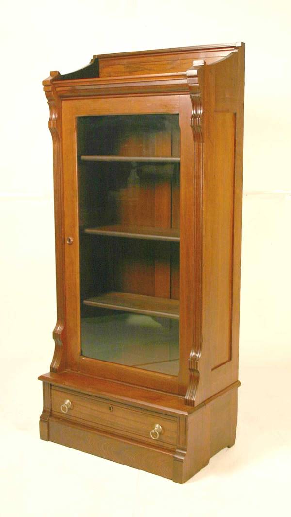 Single Door Walnut Victorian Bookcase. 63.25"h x 2