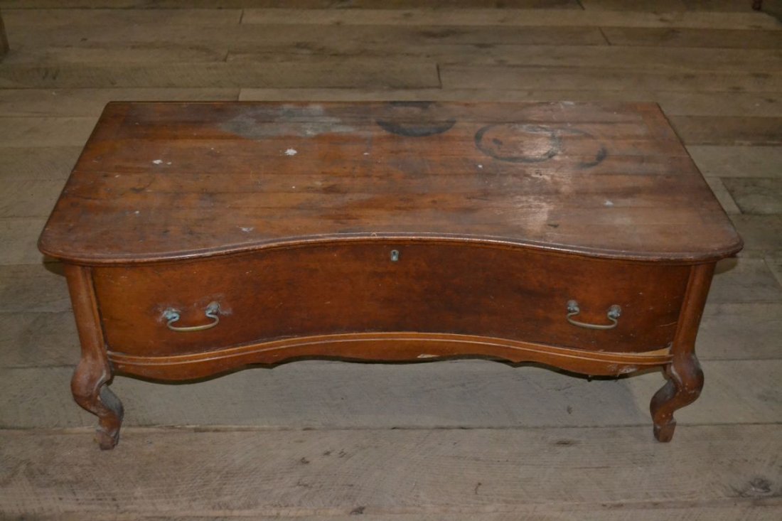 SoldDiminutive cherry lift top blanket chest, single drawer base, replaced pulls, chest is 38.25" 16"Diminutive cherry lift top blanket chest, single drawer base, replaced pulls, chest is 38.25" 16" deep, height is 31"See Sold Price