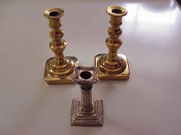 SoldPAIR STERLING SILVER SINGLE LIGHT CANDLESTICKPAIR STERLING SILVER SINGLE LIGHT CANDLESTICK WITH RISER AND SILVER SHADE Candle Lamp Gorham Silver Shade Faux Ivory Candlesticks with shade (and bedded underline) and silver base. Total H. 12 in andSee Sold Price