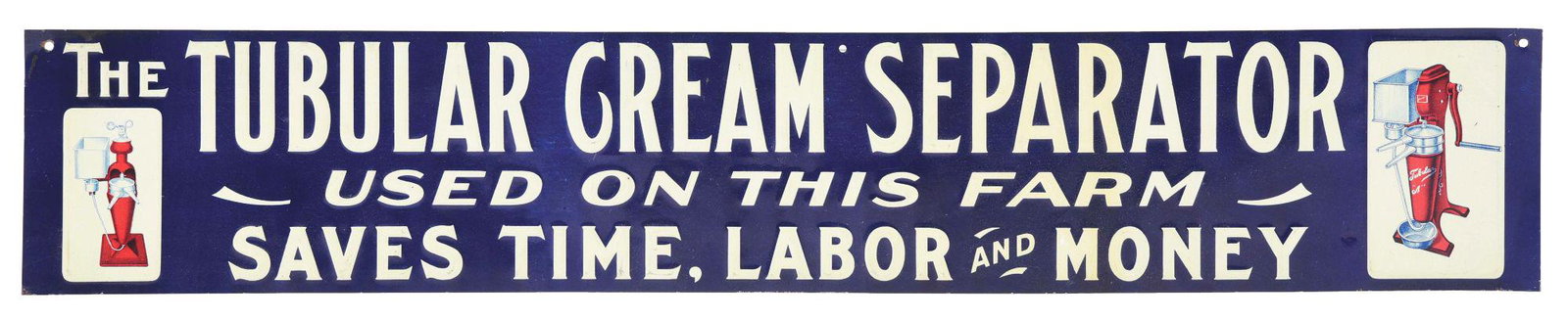 SINGLE SIDED EMBOSSED TIN CREAM SEPARATOR SIGN.