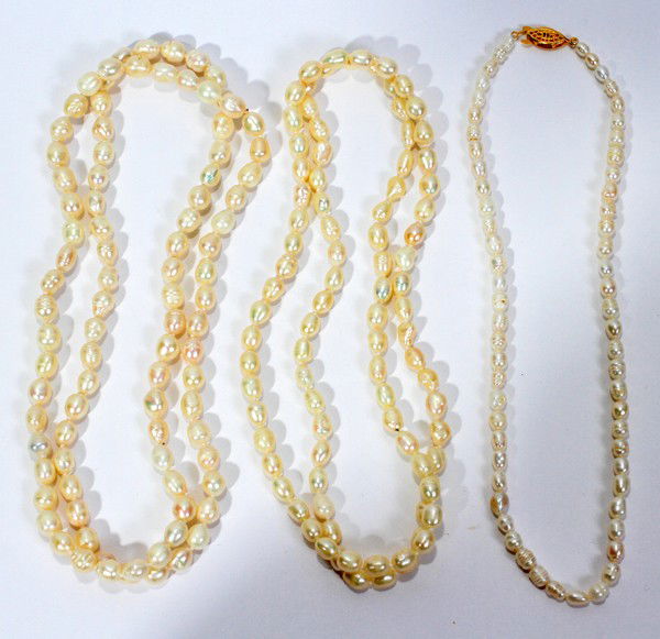 SINGLE STRAND BAROQUE PEARL NECKLACES, THREE