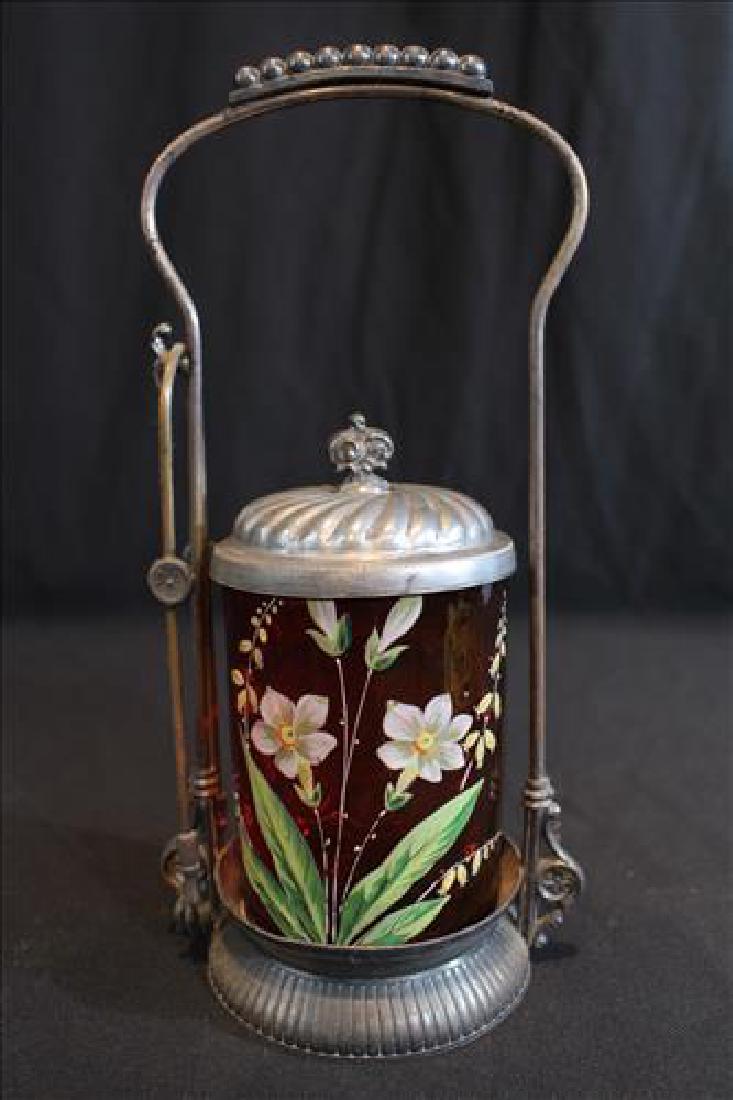 PAIRPOINT QUADRUPLE PLATE PICKLE CASTOR WITH ENAMELED RUBY GLASS INSERT, C. 1890?1910Apr 17, 2026Victorian Pickle Castor, Blue Art Glass Insert With Cane Pattern DesignApr 18, 2026Victorian Pickle CastorApr 18, 2026Victorian Pickle Castor, Cranberry Coinspot Art Glass Insert With Enamel Floral DecorApr 18, 2026Victorian Pickle Castor, Amber Pattern Glass Insert With Quartered Diamond DesignApr 18, 2026Victorian Pickle Castor, Pink Satin Art Glass Egg-Shaped Insert With Enamel Floral DecorApr 18, 2026Fancy antique pickle castor with owl3 days LeftPickle Castor, Green Coinspot Art Glass Insert With Enamel Daisy DecorApr 18, 2026Victorian Waldorf Silver Co. Plate Pickle Castor JarApr 22, 2026Pickle Castor, Cranberry Coinspot Art Glass Insert With Enamel Floral DecorApr 18, 2026Victorian Sugar Bowl, Cranberry Art Glass InsertApr 18, 2026Victorian Sugar Bowl, Blue Coinspot Art Glass InsertApr 18, 2026Victorian Celery Vase, Rubina Coinspot Art Glass Insert With Enamel Bird And Floral DecorApr 18, 2026Victorian Cranberry Glass Jugantique brass Art Nouveau planterApr 21, 2026Victorian Sterling Silver Sugar Caster by William Williams and Benjamin TateApr 28, 2026