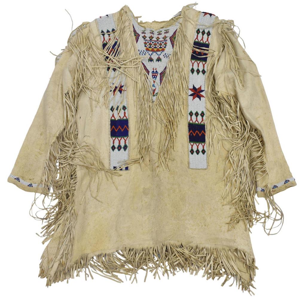 SIOUX BEADED HIDE FRINGE SHIRT, C.1915-1930