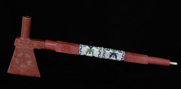 Sioux Incised Catlinite Pipe with Beaded Stem ca. 1