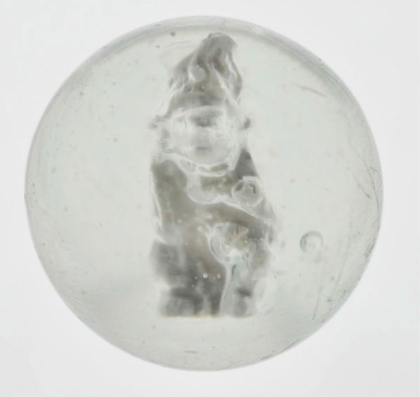 Sitting Monkey Wearing Hat Sulphide Marble.