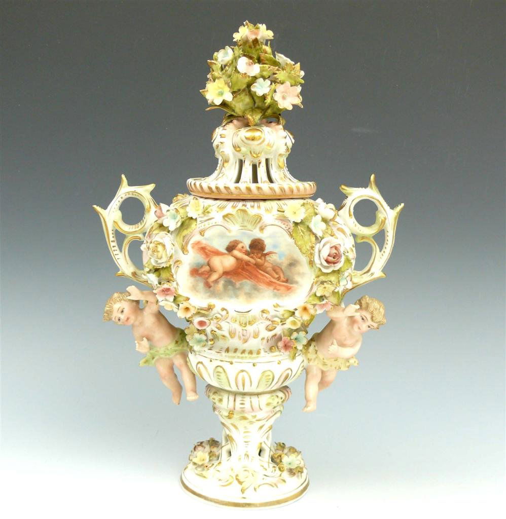 Porcelain Collection LotMar 28, 2026Antique Warwick China Footed Jardinière w/ HandlesMar 17, 2026Von Schierholz German Porcelain Cherub CompoteMar 07, 2026A Large CAPODIMONTE BERNINI Hand Painted Porcelain Vase/Urn4 days LeftSchierholz Plaue cherub bowl with applied flowers,Mar 14, 2026Alboth & Kaiser Porcelain Vase with Double Swan Handles, Moss RoseMar 04, 2026Massive Dresden Carl Thieme Floor Urn GERMAN5 days LeftLenox Belleek 17" Roses & Nudes Hand Painted Porcelain Vase5 days Left| SCHLANGENHENKELVASE MIT BLUMENMALEREIMar 12, 2026Vintage Ceramic Italian Lidded Floral BowlMar 17, 2026| SCHLANGENHENKELVASE MIT BLUMENMALEREIMar 12, 2026Antique Meissen centerpiece5 days LeftAn imposing German porcelain flower encrusted figural centerpiece, possibly Meissen, 19th century17 hrs LeftHand-Painted Figural Porcelain Vase with Gilt Handles, Signed "J. Leese"Mar 07, 2026Dresden Covered Center Bowl2 days LeftLARGE SEVRES CENTERPIECE BOWL288 Lots Away