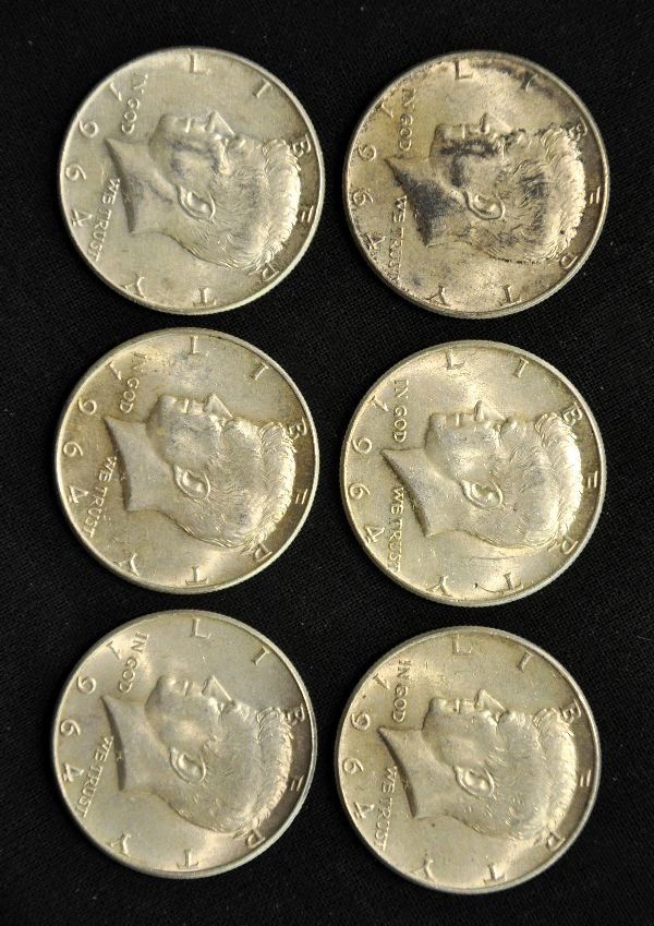 Six 1964 Kennedy Half Dollars