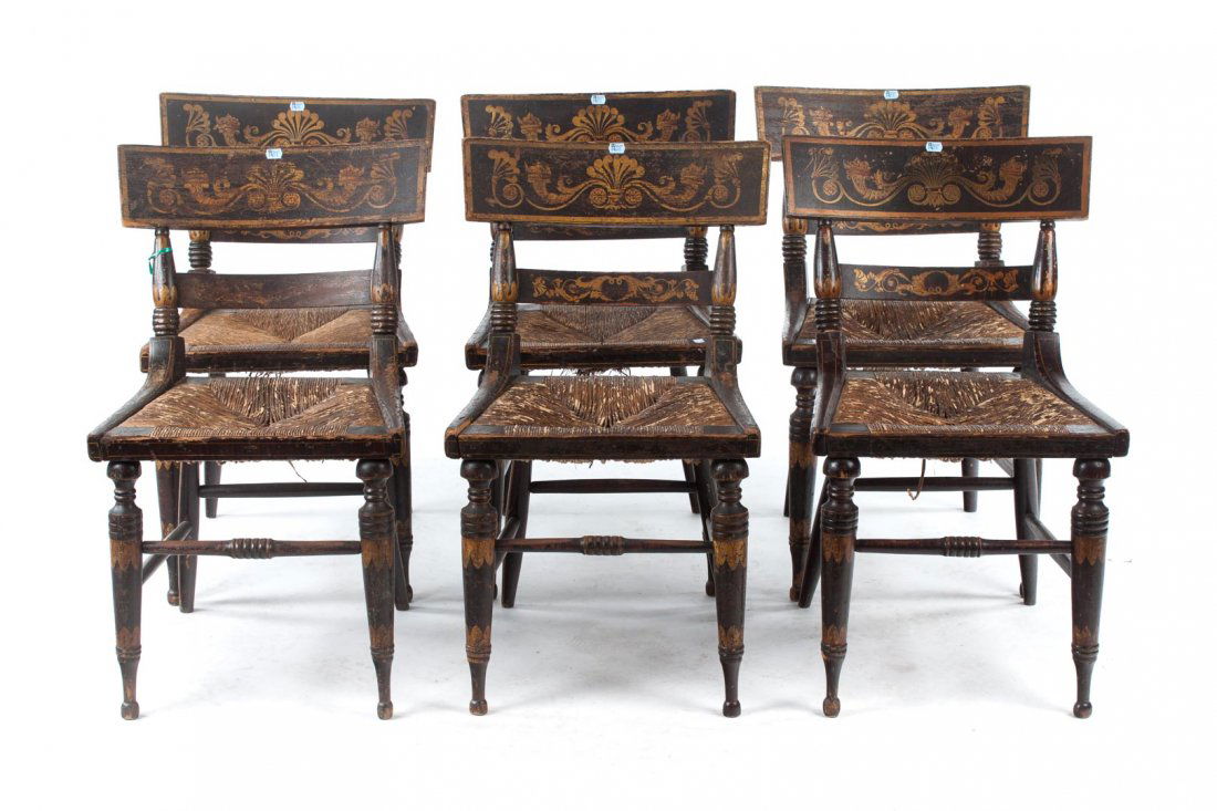 Six American Classical fancy painted side chairs