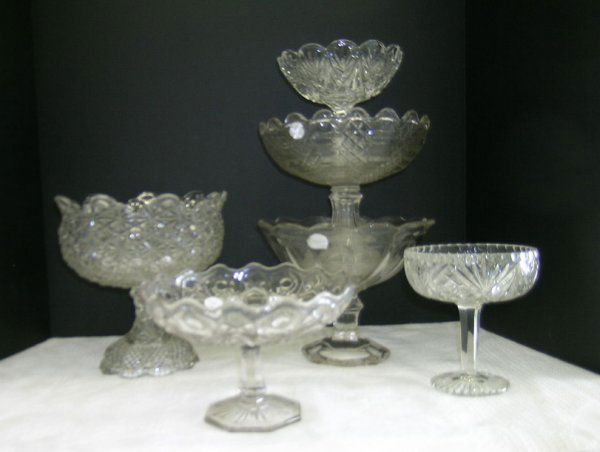 SIX AMERICAN PRESSED GLASS COMPOTES