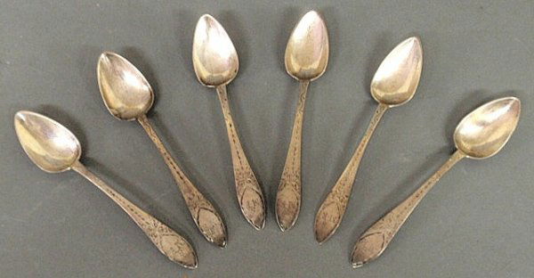 Six American silver spoons, c.1790, each monogramm