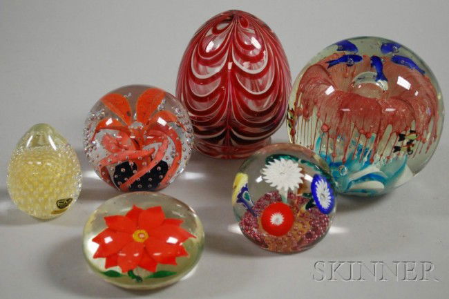 Six Assorted Art Glass Paperweights, including on
